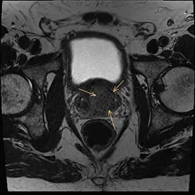 Stichworte: multiparametrische MRT, MRT der Prostata, PI-RADS, PI-RADS 5. PI-RADS 4, Transitionszone, periphere Zone, Prostatahyperplasie, multifokales Prostatakarzinom