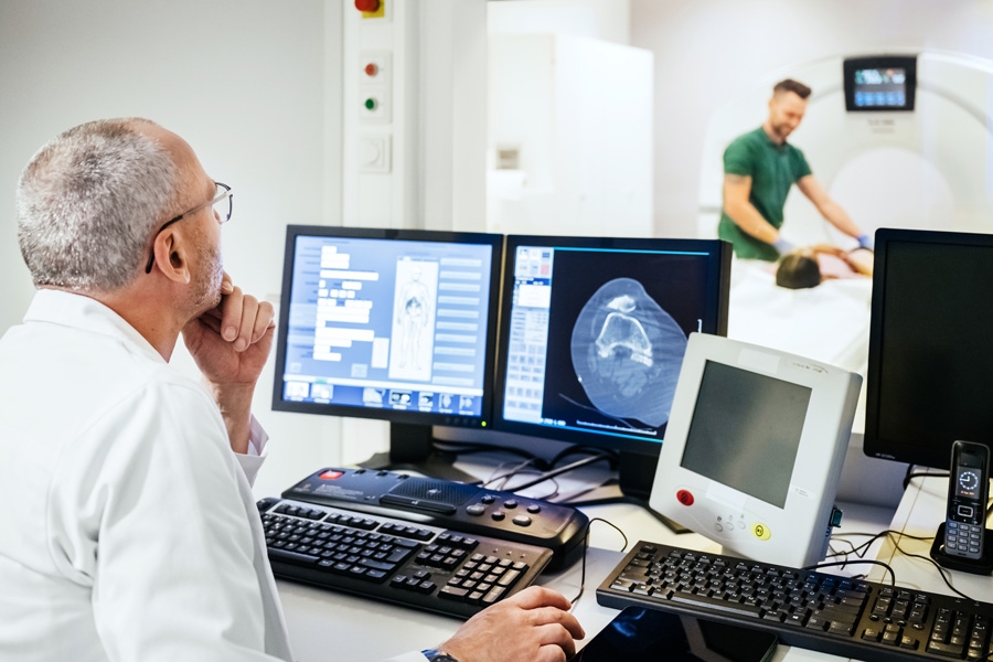 In der Röntgendiagnostik werden mit ionisierender Strahlung Knochen, Organe und Gewebe und deren krankhaften Veränderungen bildlich dargestellt.
